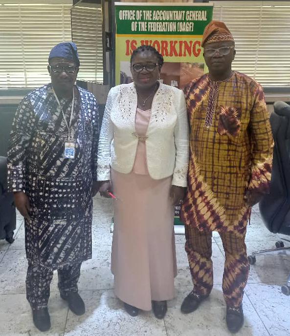 The AGF was grateful to receive the Rector, Dr Adeoye Odedeji and the Bursar, Mr Fatai Yekini, in her office with a compliment from her alma mater.