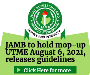 Following detailed investigation and careful analysis of the highly-successful 2021 UTME, and with due consultation (resulting in gracious concession) with the National Examination Council (NECO) concerning the timetable of the council’s ongoing SSCE, JAMB has scheduled a Mop-up UTME for Friday, 6th August, 2021, in some selected locations across the nation.